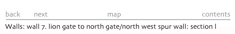 No wall is visible on this section. What is visible is the core of the medieval wall where all facework has been lost. This area needs excavationg to expose the remants of the wall(s) that exist here in order to clarify conservation needs alongside the needs of the visitor to Butrint.